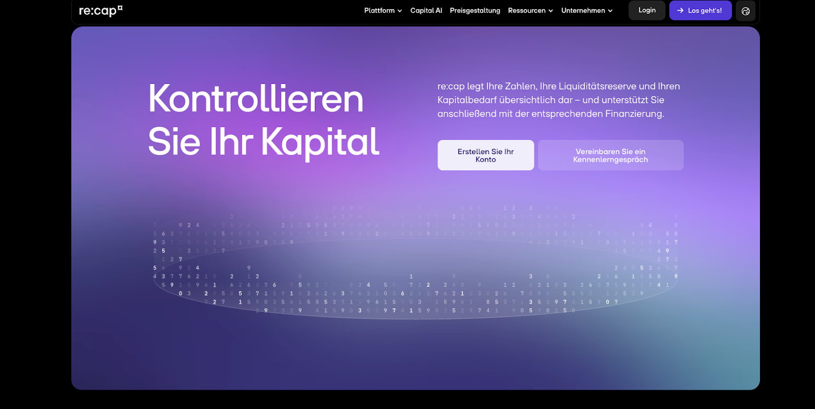 re:cap richtet sich speziell an Tech- und SaaS-Gründer, die Liquiditätsanalyse und Fremdfinanzierung aus einer Hand suchen.
