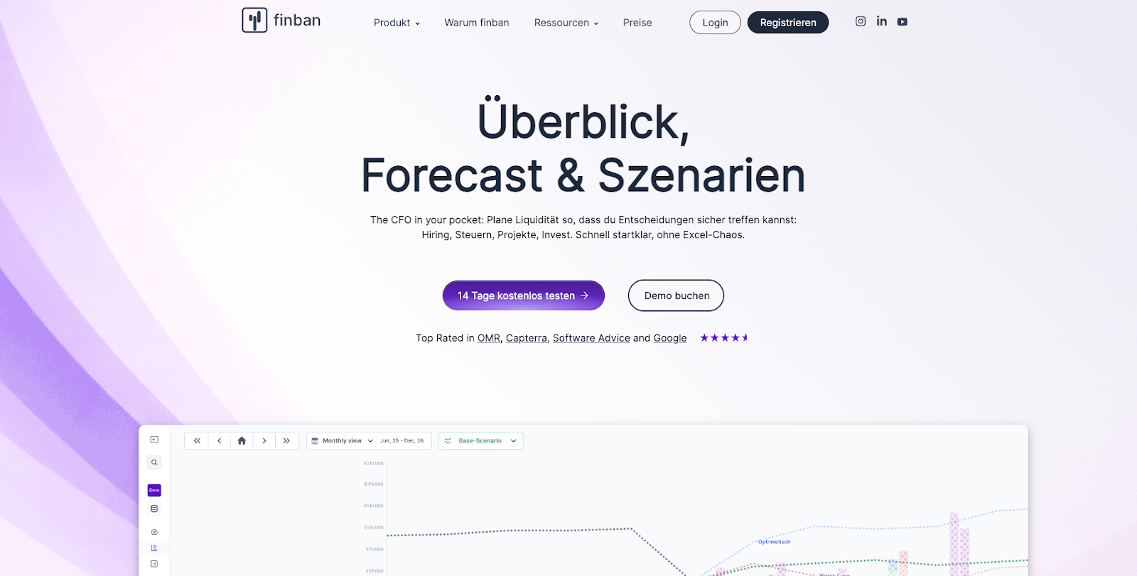 finban wurde 2023 gegründet und ist eine moderne Finanzplanungssoftware, die speziell für KMUs, Start-ups, Agenturen und SaaS-Unternehmen entwickelt wurde. Sie bietet Funktionen wie Echtzeit-Cashflow-Prognosen, Szenario-Planung und Integration von Bankkonten und Buchhaltungstools, wodurch finban eine echte Alternative zu herkömmlichen Excel-Tabellen darstellt.